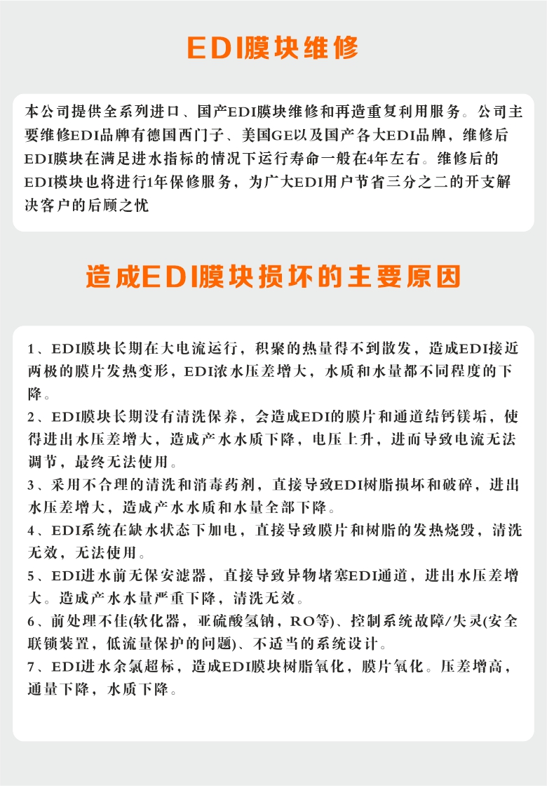 EDI模塊     EDI模塊維修進(jìn)口樹脂+膜片 1:1進(jìn)口品質(zhì) 高配不高價